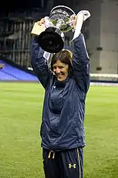 In August 2009 she was appointed first team manager at Tottenham Hotspur, where she was already working as the club's women's and girls' development officer.[9] Over the following decade, Hills presided over a series of promotions as the club developed from a completely amateur South East Combination Women's Football League team to a full-time professional FA Women's Super League outfit, playing in front of record-breaking crowds.[10][11] On 19 November 2020 Hills and joint head coach Juan Carlos Amorós were sacked.[12]