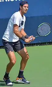 At the US Open, he made his main draw debut after passing the qualifications. In the first round he recorded his first Grand Slam win, over Thomas Fabbiano, but lost in the second round to Kei Nishikori. After that, he lost in the first round of the St. Petersburg Open to Alexander Zverev. However, he progressed further the following week at the 2016 Chengdu Open. He defeated Joao Sousa, Adrian Mannarino, Feliciano Lopez and Victor Troicki to reach his first ATP Tour final. By reaching an ATP singles final, Khachanov became the first Russian in an ATP Tour final since Mikhail Youzhny, who beat David Ferrer in the final at the 2013 Valencia Open 500.[7] Khachanov won his first ATP tournament there, beating Albert Ramos-Vinolas in three sets. He finished the year with his first ATP 500 quarterfinal run at the Vienna Open, where he recorded wins over Andreas Seppi and Nikoloz Basilashvili, before Ivo Karlovic defeated him.