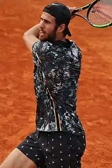 Karen Abgarovich Khachanov (Russian: Каре́н Абга́рович Хача́нов, (Armenian: Կարեն Աբգարովիչ Խաչանով; born 21 May 1996) is a Russian professional tennis player. He has won four ATP singles titles, including the 2018 Paris Masters title. Khachanov achieved his career-high singles ranking of world No. 8 on 15 July 2019, after reaching the quarterfinals of the 2019 French Open.