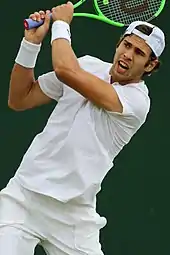 He continued with good performances, reaching the semifinal of the Halle Open. There he achieved his first win on grass over Gilles Simon,[8] and then recorded his second career top 10 win, after defeating Kei Nishikori. He lost to Roger Federer and failed to reach the final. This result ensured him a first Grand Slam seed place at the following Grand Slam at Wimbledon. There, he also had another great result, reaching his first third round, after wins over Andrey Kuznetsov and Thiago Monteiro. He then lost to Rafael Nadal.[9] His successful journey then continued with two consecutive quarterfinals at the Bastad Open and the Hamburg Open. However, he then started to struggle with form. He was eliminated in the first round at both the Canadian Open and the US Open, but reached the third round of the Cincinnati Open. In September he played in the Davis Cup for the second time in a year. He played against Hungarian players, winning against Attila Balazs and losing to Marton Fucsovics. He then went to China, reaching the second round of the Chengdu Open and the China Open and losing in the first round of the Shanghai Masters. He then returned to Europe, but still with no success, with only first rounds of the Vienna Open and the Paris Mastes. He finished the year with his debut at the Next Gen ATP Finals. He overcame Jared Donaldson, but lost to Daniil Medvedev and Borna Coric, so failed to pass the round robin group.