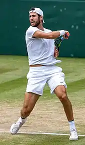 At the 2021 Wimbledon Championships he reached the fourth round for the second time.[14] This marked the first time three Russian players reached the fourth round at the All England Club since 2006, when Elena Dementieva, Anastasia Myskina and Maria Sharapova made their run.[15] He continued by reaching the quarterfinals for the first time in his career, defeating Sebastian Korda in a tight match that finished in a fifth set tiebreak 3–6, 6–4, 6–3, 5–7, 10–8.[16] He then lost in another five-set match, against Denis Shapovalov.[17]