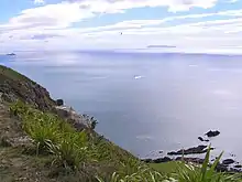 Karewa is dominated by Taupata shrubland,[2] growing on a deep friable soil on its south and west slopes,[1] underlain by Pleistocene Minden rhyolite.[4] Under the Wildlife Sanctuary (Karewa Island) Order 1965, landing is prohibited without a DoC permit,[5] as it is a Government Purpose Wildlife Sanctuary under the Reserves Act 1977. The shearwaters nest in tunnels all over the island,[1] and breed from November to May. Many Diving petrels breed from August to February and grey-faced petrels / ōi also nest on Karewa, which used to be a traditional source of these titi (mutton birds) and also of pāua, cray and kina. The island is visited by kekeno seals and is a popular dive site, known for its variety of fish.[2]