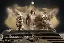 Next to his work as book author, Hammer is an art photographer, specifically in the relatively new genre imaginary realism, which diverts from conventional magic realism. Where magic realism uses magical and unreal elements in an otherwise realistic environment, Hammer only uses realistic elements but set in an imaginative scene. Comparable with how classic painters would depict, for instance, biblical scenes. Although his art work sometimes depicts well-known mythological or religious storylines, he also uses contemporary or fictional themes. Hammer conveys entire stories and even subplots through the use of color, symbols and geometrical figures. It is therefore important to find the little details that he has often hidden, like a book, a skull or certain animals that have symbolic meanings. Thus, an apparently 'simple' thematic image suddenly turns into a multi-layered art work (he also often hides triangles in his work). According to curators and critics at the Dreamscapes Exhibition his style has a somewhat 'dreamy character with spiritual overtones'.[3] Because of his uses of lighting and color, Hammer was in a 2012 Saatchi Gallery contest honored as 'a Rembrandt in photography'.[4] His work is exhibited worldwide and represented by Marcel Salome.[5]