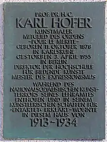 Karl Christian Ludwig Hofer or Carl Hofer (11 October 1878, Karlsruhe – 3 April 1955, Berlin) was a German expressionist painter. He was director of the Berlin Academy of Fine Arts.