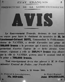 The assassination led to the arrest and execution of 48 hostages on 22 October 1941, including Guy Môquet, Charles Michels and Jean-Pierre Timbaud.