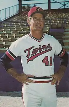 After weathering the 1976 debacle, Kuehl remained in the Major Leagues as a coach with the Minnesota Twins[3] under manager Gene Mauch, whom he had replaced in Montreal. He also served under Mauch's successors, Johnny Goryl and Billy Gardner, during his six years (1977–1982) with the Twins.