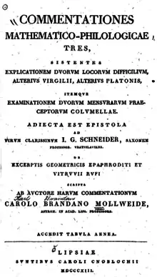 | Born | Karl Brandan Mollweide 3 February 1774 Wolfenbüttel, Lower Saxony, Germany |
