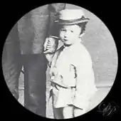 Ludwig received a formidable education at the Piarist Gymnasium before serving in the military. Run-ins with the law began in 1862 when he stole money from his regiment. His mother, Caroline, relinquished the remaining savings of her inheritance to keep him from being arrested.[6] Following his service, Ludwig became a journalist for the magazine Die Glocke. In 1868, Ludwig had to escape Vienna from both creditors and criminal court, by means of his mother's money a second time, and fled to Munich. There he became acquainted with Ludwig Nohl, who introduced him to composer Richard Wagner, who in turn requested his services to King Ludwig II of Bavaria. It was during this time that Ludwig began falsely claiming himself as the grandson of Ludwig van Beethoven.[7] This direct line of musical nobility so impressed the King that he gave Ludwig a healthy salary on which to live. It was also at this time that Ludwig married his wife Marie (née Nitsche), a gifted pianist in her own right.[8] He also began passing himself off as a Baron, and cheating people out of their wages. By 30 August 1871, facing four years in jail for his various offenses, Ludwig and Marie (who also faced six months),[7] along with their son Karl Julius Maria (born 8 May 1870 in Munich) fled to Hamburg where they set sail for America.[6] While in America, Ludwig changed his name to Louis von Hoven, to separate himself from his famous surname and (as he disclosed to his sister): "[save me from] being continuously faced with annoying questions." Louis and his wife Marie had six children: two of which are unknown, Marie (1865–1865), Meta (1874–sometime before 1890), and Heinrich (1871–1872). Their only son, Karl Julius, survived into adulthood.