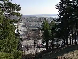 Karlskoga was initially called Möckelns bodar or Bodarna,[6] being derived from cottages located at the shore of lake Möckeln.[7] The locality's name "Karlskoga" was coined in 1591, and has been in use ever since. It is derived from Charles (Karl) IX, with skog meaning woods.[8]