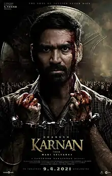 pronunciation ) is a 2021 Indian Tamil-language action drama film directed by Mari Selvaraj, and produced by Kalaipuli S. Thanu. The film stars Dhanush, Lal, Yogi Babu, Natarajan Subramaniam, and Rajisha Vijayan (in her Tamil debut). The film features music composed by Santhosh Narayanan, cinematography handled by Theni Eswar, and editing done by Selva R. K. Loosely influenced from the 1995 Kodiyankulam caste violence,[2] the film features the titular character Karnan, hailing from a conservative background, fighting for the rights of his people.[3]
