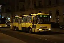 Karosa B 932 is a model of the Karosa 900 series. The B 932 is derived from the Karosa B 732 city bus, and also unified with city bus models such as the B 941 and the B 931. The body is semi-self-supporting with frame and engine with manual gearbox in the rear part. The engine drives only the rear axle. The front axle is independent, rear axle is solid. All axles are mounted on air suspension. On the right side are three doors (first are narrower than middle doors). Inside are used plastic Vogelsitze or Fainsa seats. The driver's cab is separated from the rest of the vehicle by a glazed partition. In the middle part is room for a pram or wheelchair.