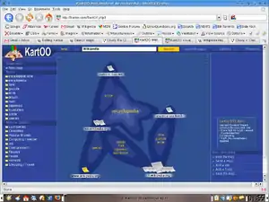 KartOO had an Adobe Flash GUI, as opposed to a text-based list of results. Its color scheme was to a degree reminiscent of Apple Computer's Aqua interface. Search results were presented as a "map", with blob-like masses of varying color connecting each item. On rollover of an individual result a bunch of red lines connected related links. KartOO sometimes helped to narrow down searches with a general topic. Every "blob" clicked added another word to the search query. The map would often succeed in presenting keywords or subtopics that defined the topic one was searching on, very much like an interactive spider diagram.