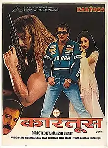 Kartoos (lit. 'Cartridge') is a 1999 Indian Hindi action thriller film directed by Mahesh Bhatt and starring Sanjay Dutt, Jackie Shroff and Manisha Koirala. It is the last release of Mahesh Bhatt as a director till Sadak 2 (2020). The film borrows its plot idea from the 1993 film Point of No Return, which in turn is a remake of the French film La Femme Nikita, where Bridget Fonda essays a role which is very similar to that character of Sanjay Dutt.[1] The movie was partly remade in Tamil as Paramasivan (2006).