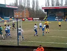 On 14 August 2009, Schmeichel signed for League Two side Notts County in a deal that is believed to have broken the club's previous transfer record. The transfer reunited Schmeichel with his former Manchester City manager, Sven-Göran Eriksson, who had recently been appointed director of football for Notts.[33] He was the highest paid player at the club, earning £1 million annually.[34] He made his debut on 22 August and kept a clean sheet in the side's 3–0 win against Dagenham & Redbridge. In September 2009, Schmeichel almost scored with an audacious overhead kick against Morecambe when he came up from a corner late on in the game.[35]