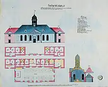 A prison complex was built on the rear side of the church in 1725. Eye holes in the wall between the church and the prison cells made it possible for the prisoners to follow the church services.