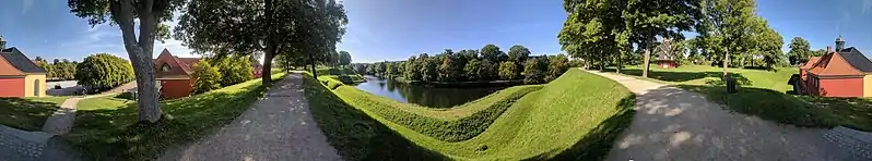 The Blacksmith's Line (Danish: Smedelinien) is a system of outworks, separating the inner and the outer moat, located to the south and southwest towards the city. It consisted of four ravelins and three counter guard interconnected by long, low earthworks. On Fyn's Ravelin, one of the eponymous forges has been preserved and is now used by the park authorities. Another forge was built on Falster's Counter Guard in 1709. Rebuilt in 1888, it now serves as residence of military employees. When the Free Port of Copenhagen was constructed, the northern portion of the Blacksmith's Line was dug away, but the remaining part was put at the disposal of the City of Copenhagen in 1918 and now serves as parkland.