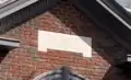 The East York Lane (southern) façade has a door, with a single sash window immediately either side of it and a triple sash on the eastern extremity, giving an asymmetrical appearance. The door, reached by four brick steps, has the same semi-circular window design, and two lanterns, as the main door. Another door, facing south but part of a wing on the building's eastern façade, is accessed by a set of concrete steps. The yard is surrounded on the Houston Street and East York Lane sides by a brick wall with light gaps. There is a gate in the wall on the Houston Street side.