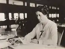 After the war, in addition to her private practice and hospital affiliation, she worked with the Women's Bureau of the Metropolitan Police Department in Washington,[9] and spoke to women's organizations.[10][11] In 1932, she donated her medical services to the Bonus Army protesters and their families in their encampment.[12] She was president of the American Medical Women's Association from 1938 to 1939.[13] In that role, she petitioned Congress for women military doctors to receive the same pay, rank, and benefits as their male colleagues.[1][14]