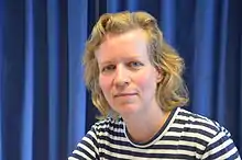 Katharina Grosse (born 2 October 1961) is a German artist. As an artist, Grosse's work employs a use of architecture, sculpture and painting. She is known for her large-scale, site-related installations to create immersive visual experiences. She has been using an industrial paint-sprayer to apply prismatic swaths of color to a variety of surfaces since the late 1990s, and often uses bright, unmixed sprayed-on acrylic paints to create both large-scale sculptural elements and smaller wall works.