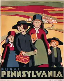 ![]() Poster promoting Pennsylvania, showing children from a religious community (Lithograph, original artwork by Milhous)[2] | |