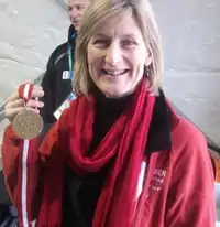 ![]() Kreiner-Phillips in 2010 with her 1976 Olympic gold medal | |
