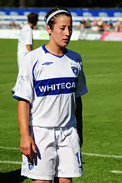 Katie Thorlakson (born January 14, 1985 in New Westminster, British Columbia) is a Canadian retired soccer forward, who last played for Melbourne Victory FC. Thorlakson won two medals with the Canadian women's national soccer team at the Pan American Games in 2003 and 2007. She played collegiately soccer for the University of Notre Dame women's soccer team, where she record 73 assists, second most in school history. In 2004, she won the Soccer America Player of the Year Award, awarded to the best player in collegiate soccer for that year.