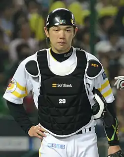 Katsuki Yamazaki (山崎 勝己, born August 16, 1982 in Itami, Hyōgo) is a Japanese former professional baseball catcher. He has played in Nippon Professional Baseball (NPB) for the Fukuoka Daiei Hawks / Fukuoka SoftBank Hawks and Orix Buffaloes.