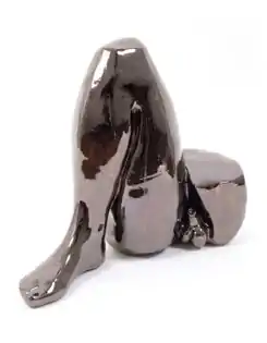 Schimert's next three shows focused on the body and the impact of emotional conflict and historical events such as war on human consciousness. "Body Parts" (2001) featured two sculpture installations connected by a room of ink-and-watercolor drawings.[43][2] The first installation presented ceramic body parts and internal organs glazed with an opalescent, gunmetal-colored finish that were displayed on pedestals like specimens from a forensic medicine procedural or museum artifacts offered for contemplation. The second installation reconfigured these objects into a surreal ensemble: a pile of seventy mounded on a large, low square pedestal that suggested carnage (such as the recent Rwandan genocide), a mass grave or classical discards; the intervening drawings depicted a bloody landscape of death and violent passion populated with fighting and embracing figures.[43][2][44]