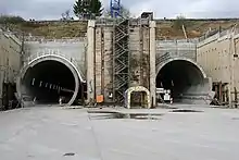 ![]() The southern portal of the two tubes of the Katzenberg Tunnel | |