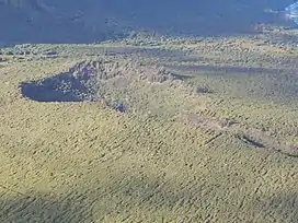 The crater contains many lava channels and tubes, which vary significantly in size.[6] In particular, a kilometer-long lava channel, which is up to 150 meters wide and 30 meters deep, begins at the crater's northeastern side and continues north. This channel contains many smaller channels and tubes that branch out of it.[5]