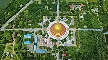 The Kaunghmudaw Pagoda (Burmese: ကောင်းမှုတော် ဘုရား [káʊɰ̃ m̥ṵ dɔ́ pʰəjá]; Yaza Mani Sula Kaunghmudaw (ရာဇမဏိစူဠာ ကောင်းမှုတော်); Pali: Rājamaṇicūḷā) is a large pagoda on the northwestern outskirts of Sagaing in central Myanmar (Burma). Modeled after the Ruwanwelisaya pagoda of Sri Lanka,[1] the Kaunghmudaw is known for its egg-shaped design, which stands out among more traditional-style, pyramid-shaped Burmese pagodas. The stupa's formal name Yaza Mani Sula signifies the enshrinement of Buddhist relics inside its relic chamber. But it is commonly known by its popular name, Kaunghmudaw (lit. 'Royal Merit-Making'). It is an important pilgrimage and tourist destination in the Sagaing area.