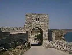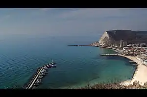 Kavarna (Bulgarian: Каварна [kɐˈvarnɐ]; Romanian: Cavarna), is a Black Sea coastal town and seaside resort in the Dobruja region of northeastern Bulgaria. It lies 64 kilometres (40 miles) northeast of Varna, 49 km (30 mi) from Dobrich on the international road E87 and 43 km (27 mi) south of the border with Romania. It is the principal town of Kavarna Municipality, part of Dobrich Province. As of December 2009, the town has a population of 11,397 inhabitants.[1][2][3] A little yacht port, a fishing base, a spacious beach and a resort complex exist in the town. The landmark Cape Kaliakra is located a few kilometers to the east, as is the tiny beachfront resort of Rusalka. Three 18-hole golf courses with villa communities and marinas are being developed nearby, two of the courses are designed by Gary Player and one by Ian Woosnam.