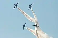 - On 4 July 2000, two aircraft of the Blue Impulse display team (46-5727 and 46-5720)were both destroyed.[17][18][19] Three crew were killed. Aerobatic training was halted until March 2001 as a consequence of the accident.[20]