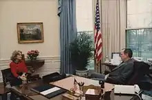 Hutchison has a mixed voting record on abortion rights. In 2012, she said she identifies as "pro-life."[28][29] She was identified as nominally pro-abortion rights for several years including 2005–2010.[30][31][32] She served as an honorary board member of The WISH List, a pro-abortion rights Republican special interest group.[33] She has voted to restrict abortion rights, but has said that she does not favor overturning Roe v. Wade and that the Republican Party should not build its platform around abortion, which she calls a "personal and religious issue."[34] In 1993, Hutchison, then a candidate for the US Senate, identified as "pro-choice" while supporting restrictions on abortion and received campaign contributions from the WISH List.[35] In 1994, Senator Hutchison was one of 17 Republicans who broke with their party to vote in favor of a bill, sponsored by Senator Edward Kennedy, to protect access to abortion clinics by making it a federal crime to block or physically attack the clinics.[36] Also, "Hutchison voted for a 2003 resolution in the Senate stating that the Roe decision 'was appropriate and secures an important constitutional right; and such decision should not be overturned.'"[37] She was one of nine Republicans who joined Democrats to support Roe.[38][39] Hutchison continued to support abortion rights early in a pregnancy. She said: "I've always said that I think that women should have the ability to make that decision, even if I disagree with it."[35] In June 2004, during the Republican state convention, she told reporters she supported a woman's right to have an abortion early in a pregnancy.[40]