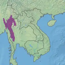 The ecoregion has 168 species of mammals, including several threatened species. Larger mammals include tiger (Panthera tigris), Asian elephant (Elephas maximus), gaur (Bos gaurus), banteng (Bos javanicus), wild water buffalo (Bubalus arnee), Asian black bear (Ursus thibetanus), mainland serow (Capricornis milneedwardsii), clouded leopard (Pardofelis nebulosa), Malayan tapir (Tapirus indicus), dhole (Cuon alpinus), Assam macaque (Macaca assamensis), stump-tailed macaque (Macaca arctoides), smooth-coated otter (Lutrogale perspicillata), great Indian civet (Viverra zibetha), and particoloured flying squirrel (Hylopetes alboniger). The ecoregion has one endemic mammal, Kitti's hog-nosed bat (Craseonycteris thonglongyai).[4]