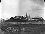 Also of interest are snow-white towers and walls, erected in the 16th and 17th centuries but later renovated; the Qol-Şärif mosque, recently rebuilt inside the citadel; and the Governor's House (1843—53), designed by Konstantin Thon, now the Palace of the President of the Republic of Tatarstan. The Palace is believed to be located on the site of a former Khan's palace. Tucked between Presidential Palace and Söyembikä Tower is the palace church built on the foundation of a medieval mosque.