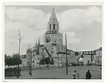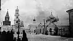 The Spasskaya Tower is named after the Spassky Monastery, which used to be located nearby. Among the monastery's buildings were the Church of St. Nicholas (1560s, four piers) and the Cathedral of the Saviour's Transfiguration (1590s, six piers). They were destroyed by the Communists during Joseph Stalin's rule.