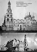 The Kazan Kremlin includes many old buildings, the oldest of which is the Annunciation Cathedral (1554—62), the only 16th-century Russian church to have six piers and five apses. Like many of Kazan's buildings of the period, it is constructed of local pale sandstone rather than of brick. The renowned Pskov architects Postnik Yakovlev and Ivan Shirjay (called Barma) were invited by the Tzar to rebuild the Kazan Kremlin in stone. The cathedral bell tower was erected in five tiers at the urging of Ivan the Terrible and was scored to resemble the Ivan the Great Belltower in Moscow, but was pulled down by the Soviets in 1930.