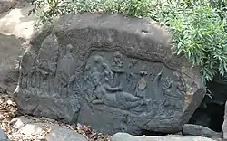 The site consists of a series of stone rock relief carvings in sandstone formations of the river bed and banks. It is commonly known as the "Valley of a 1000 Lingas" or "The River of a Thousand Lingas". The motifs for stone carvings are mainly myriads of lingams (phallic symbol of Hindu god Shiva), depicted as neatly arranged bumps that cover the surface of a sandstone bed rock, and lingam-yoni designs. There are also various Hindu mythological motifs, including depictions of the gods Shiva, Vishnu, Brahma, Lakshmi, Rama, and Hanuman, as well as animals (cows and frogs).[1][2][3][4][5][6][7]