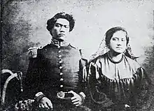 She later divorced Lihilihi at the command of her aunt Keʻelikōlani.[11][25] She married a man named Kamali. Her obituary in 1902 reported, "Several years ago her husband [Kamali] went away into the mountains and nothing more was heard of him."[12] From this marriage, she had three children including Lot Kapuāiwa Kamehameha (1883/1884–1917), who died age 33,[26] Keōpūolani, who married and had descendants with John Kali,[11][27] and Olga Keahikuni Kekauʻōnohi (1889–1907), who died aged 18.[28]