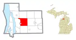 ![]() Location within Antrim County (red) and an administered portion of the Bellaire village (pink) | |