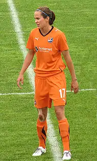 Dowling represented the United States on the under-19 women's national soccer team and captained the gold-winning team to the first-ever FIFA U-19 Women's World Championship.[13][14] Two years later, she helped the United States under-21 team win gold at the Nordic Cup. She was called up for training camps for the senior national team in preparation for the 2007 Algarve Cup in Portugal in 2007 and 2008 Olympics, but did not make the final rosters.