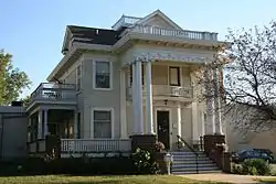 The Keerl–Decker House is a historic building located in Mason City, Iowa, United States. It was designed by local architect E.R. Bogardus, and completed in 1902. The two-story frame structure features a full height front porch with Ionic columns. There is also a similar single-story side porch. The house is capped with a hip roof with dormers, and a denticulated cornice with modillions. It was built for Irving Keerl, who served as Clerk of Courts for Cerro Gordo County, and he was one of the organizers of the Iowa State Bank of Mason City. The house is also associated with the Decker family who owned it from 1919 to 1965. They operated the Decker Meat Packing Plant, which is now operated by ConAgra Foods.[2] The house was converted into a restaurant in the 1970s. It was at that time that an addition to house a commercial kitchen was built. The house has subsequently been converted into a bed and breakfast. It was listed on the National Register of Historic Places in 2002.[1]