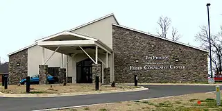 The UKB have struggled to maintain use and education in the Cherokee language.[11] As of 2018, only 101 people in the UKB were counted as being fluent,[12] with most speakers either in the grandparent generation or older.[lower-alpha 1] In 2019, the Tri-Council of Cherokee tribes declared a state of emergency for the language due to the threat of it going extinct, and called for the enhancement of revitalization programs.[14]