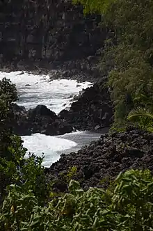 Kehena Beach is a narrow black sand beach located on the east shore of the island of Hawaii, in the Puna district. Spinner dolphins frequent the water; as a result, the beach has also been known as Dolphin Beach.[1]