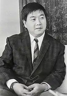 Kei Tani (谷啓, Tani Kei) (born Yasuo Watanabe (渡部 泰雄, Watanabe Yasuo) ; 22 February 1932 – 11 September 2010) was a Japanese comedian, actor and musician. Born in Tokyo, he learned to play the trombone and, while a student at Chuo University, began playing in jazz bands performing for American soldiers during the Occupation of Japan.[1] He quit university and joined the City Slickers with Frankie Sakai in 1953.[2] In 1956, he joined the comic-jazz band The Crazy Cats with Hajime Hana and Hitoshi Ueki.[2][3] He came to fame when the Crazy Cats started appearing on television, especially through their variety show "Shabondama Holiday," and in movies, through comedy series such as the "Irresponsible" (Musekinin) series at Toho.[1] Some of his nonsense one-word gags such as "gachon" became buzzwords imitated throughout the nation.[2][3] He also appeared alone in dramatic roles on film and television, was a regular in the "Tsuribaka Nisshi" film series, and continued to be a popular figure on variety TV.