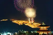 Keihanshin (京阪神, "Kyoto-Osaka-Kobe") is a metropolitan region in the Kansai region of Japan encompassing the metropolitan areas of the cities of Kyoto in Kyoto Prefecture, Osaka in Osaka Prefecture and Kobe in Hyōgo Prefecture. The entire region has a population (as of 2015) of 19,302,746 over an area of 13,228 km2 (5,107 sq mi).[2] It is the second-most-populated urban region in Japan (after the Greater Tokyo area), containing approximately 15% of Japan's population.