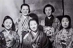 The choice of Hiroshima as their evacuation zone was a source of consternation for members, because the city remained relatively unscathed despite its military strategic importance, and a major strike was thought imminent.[54] Sonoi wrote in April stating that she tried to refuse going to Hiroshima and remain in Tokyo (which had been incinerated in the March bombing), but was pressured to change her mind.[lower-alpha 12][55] Also while she was still at Tokyo, she went to the Toho Studio office asking if there were any film roles for her, which she wanted to take to extricate herself from touring under heavy bombardment. In fact director Kajirō Yamamoto was hoping to cast her in his new film (Kaidanji) but the office replied no, and she had left.[56][57]