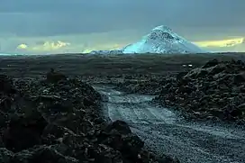 Keilir (Icelandic pronunciation: [ˈcʰeiːlɪr̥]; 378 m asl) is a Pleistocene subglacial mound or perhaps a conical tuya[3] on Reykjanes Peninsula in Iceland.[4] Basal area is 0.773 km2, summit area 0.004 km2, basal width 0.99 km, summit width 0.07 km, volume 0.0362 km3.[3]