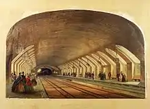 Metropolitan Railway, Baker Street Station. Chromo lithograph published by Kell Brothers, c. 1863.